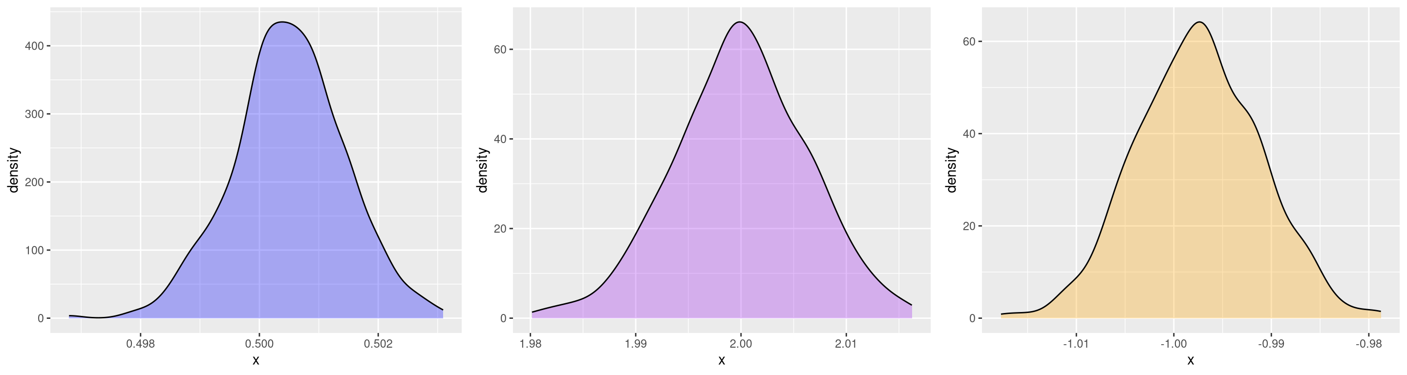 grid.arrange(pop_a_dens, pop_b_dens, pop_c_dens, nrow = 1)