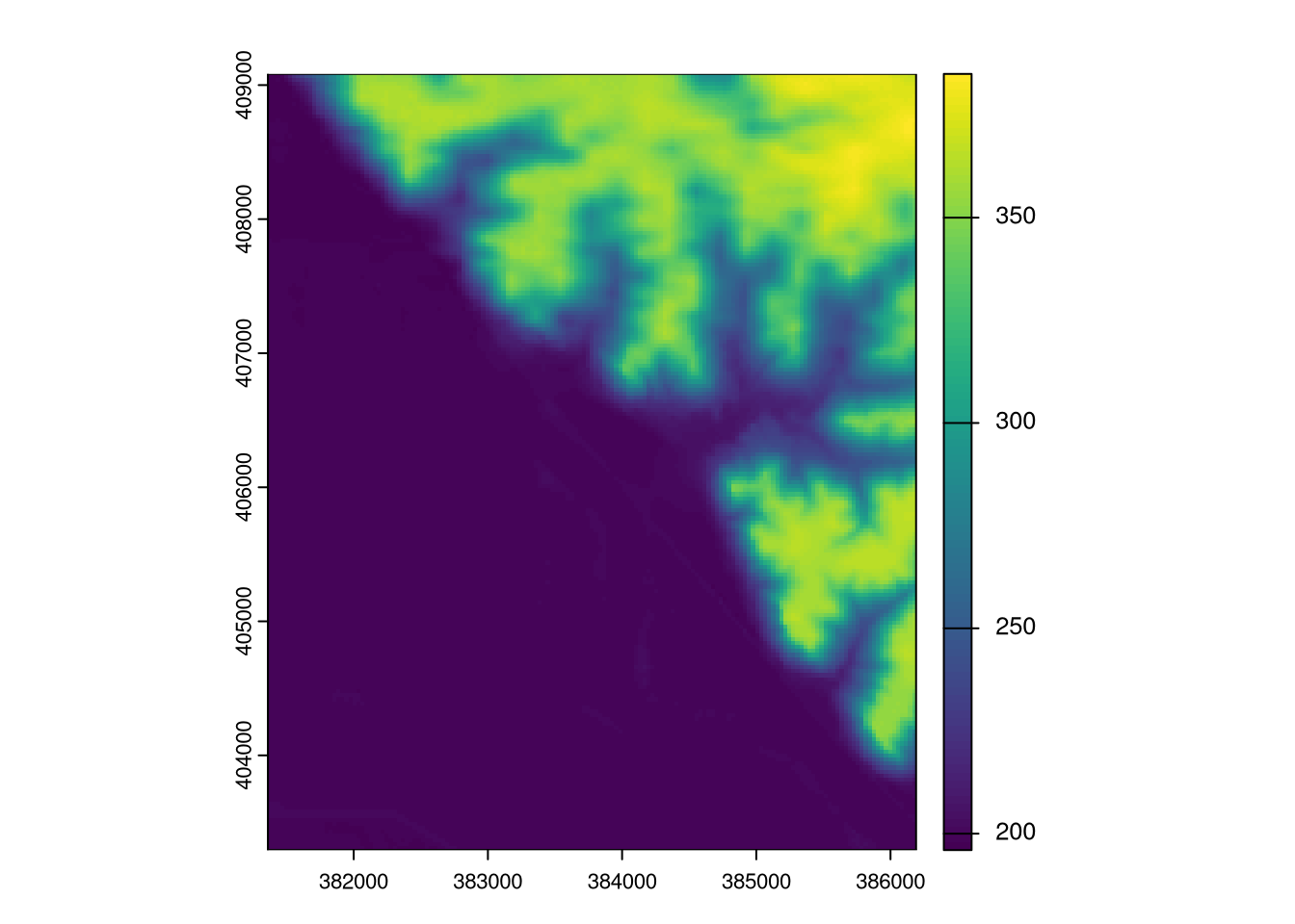 fc_mat <- raster_to_matrix(fc_dem)Years ago I had undertaken this process with the now defunct raster package,